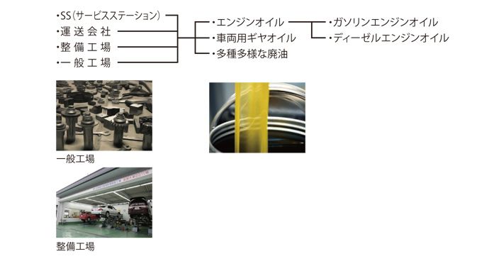 限られた石油資源の有効活用のため、提携会社のご協力によりお客様から多種多様な廃油を回収し、再生重油・補助燃料に加工し、廃油のリサイクルを行っています。